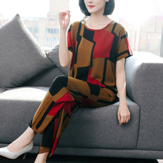 女士睡衣夏季短袖薄款棉绸女款套装大码宽松时尚人棉可外穿家居服