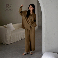 悦内睡衣女士春夏季冰丝绸长袖长裤家居服仿真丝绸春秋款秋季女款