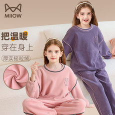 海岛绒儿童睡衣套装春秋冬季男女孩保暖加厚薄绒小清新简约家居服