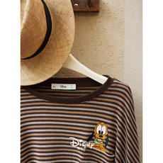 贝妍珊瑚绒睡衣女秋冬新款圆领套头条纹家居服保暖半边绒宽松套装