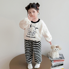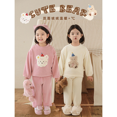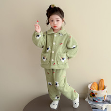 儿童睡衣男童家居服冬季加绒加厚珊瑚绒女孩秋冬法兰绒珊瑚绒套装