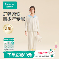 全棉时代25年秋季新款少女针织家居服中大女童学生睡衣裤纯棉套装