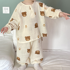 儿童睡衣套装2025春秋新款棉纱布家居服男童全棉女童空调服2件套