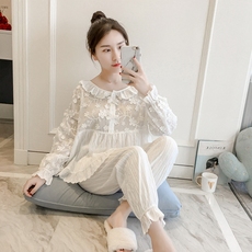 红豆新款睡衣女春秋季柔柔棉长袖套装女士可外穿可爱娃娃领家居服