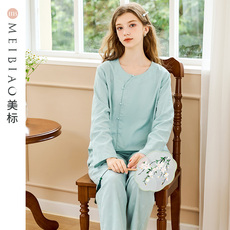 美标新中式国风汉服棉双层棉纱纯棉睡衣女士春秋全棉家居服套装夏