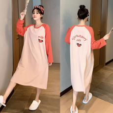 睡裙女春夏季纯棉长袖连衣裙薄款春秋韩版孕妇睡衣大码宽松特大号