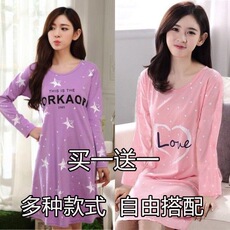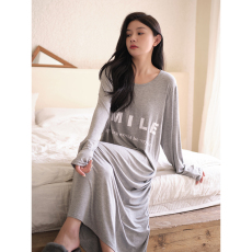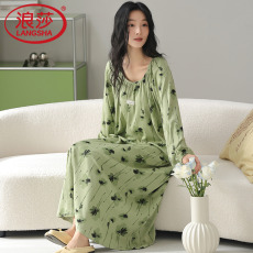 莫代尔长袖睡裙女款纯棉春秋季甜美卡通连衣裙孕妇大码睡衣女夏季