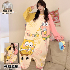 海绵宝宝带胸垫连体睡衣女春秋长袖2024年秋纯棉孕妇睡衣长款睡裙