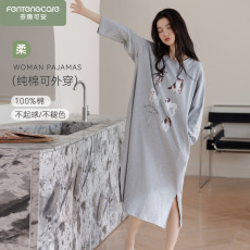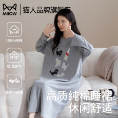 猫人纯棉女士睡裙2025春秋新款卡通印花甜美大码可外穿家居服睡衣