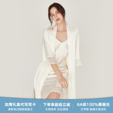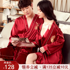 真丝吊带睡衣女春秋新款红色新娘婚礼晨袍性感睡裙桑蚕丝睡袍套装