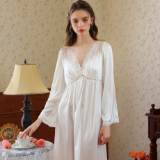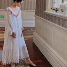 法式赫本风春秋长款长袖睡裙女公主风宫廷晨袍纯棉睡衣仙气家居服