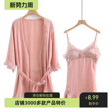 春秋轻性感睡衣女两件套丝绸软绵绵外穿冰丝吊带睡裙带胸垫家居服