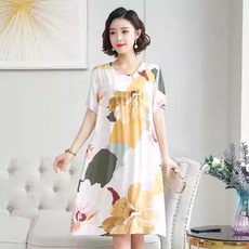 轩靓莫代尔睡裙女春夏款半袖七分袖睡衣新款冰丝凉感春秋季连衣裙