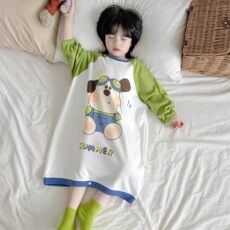 雪雅可儿童睡裙女童春秋纯棉睡衣长袖薄款小女孩宝宝家居服中大童