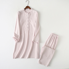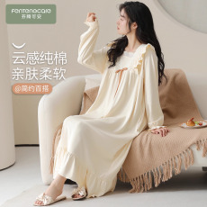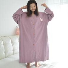 纯棉纱布料睡裙女高级感长袖连衣裙月子睡衣可外穿家居服睡袍春秋