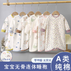 婴儿睡袍防踢被春秋纯棉无骨连体衣男女儿童长袖睡裙秋季宝宝睡衣