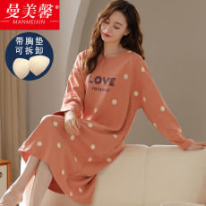 北极绒纯棉睡裙女春秋季长袖可外穿休闲中长款连衣裙子家居服秋冬