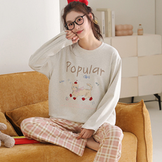 卡之恋睡衣长袖女款春秋季加厚纯棉布料100全棉长裤涂鸦家居服冬