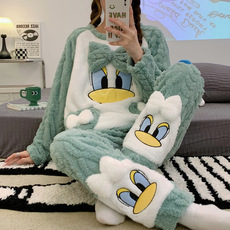 睡衣冬季女款珊瑚绒加厚加绒长袖可爱宽松法兰绒家居服套装可外穿