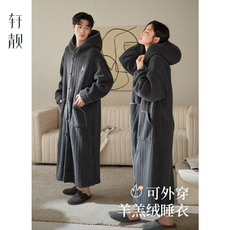 睡袍女士情侣秋冬季加绒加厚珊瑚法兰绒加长款睡衣浴袍洗完澡穿的