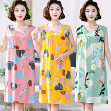 无袖睡裙女夏薄款纯棉绸睡衣女短袖宽松大码中年妈妈家居服连衣裙