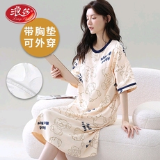 浪莎带胸垫睡裙女夏季纯棉薄款短袖甜美韩范可爱家居服可外穿2025