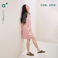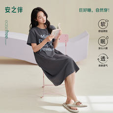 安之伴睡裙女夏款纯棉短袖休闲时尚宽松大码圆领中长款睡衣可外穿