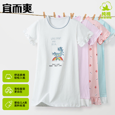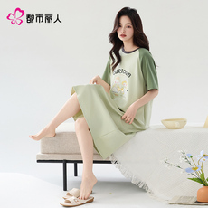 芬腾女士睡裙夏季纯棉短袖薄款睡衣裙大码夏天可爱休闲家居服中裙
