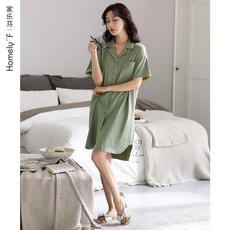 家乐芬睡裙女士睡衣夏季夏天夏款纯棉短袖薄款衬衫开衫大码高级感