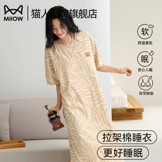 猫人纯棉睡裙女士带胸垫短袖睡衣2025新款圆领连衣裙可外穿家居服