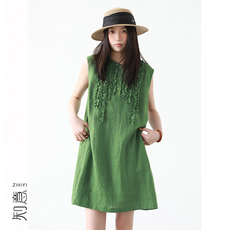 知笔墨2025夏新品紫色重工刺绣亚麻宽松连衣裙 禅意复古长袍子