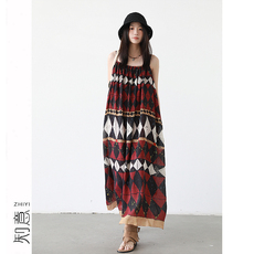 【5.28】波嘻风天丝苎麻吊带连衣裙女夏季重工定位印花裙宽松遮肉
