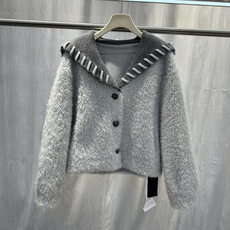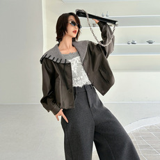 欧货2025秋冬新款韩系百搭针织海军领短款小个子羊羔毛外套25222