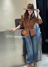GKE/谷可PY3282短款简约翻领皮衣外套2025秋冬款女士收腰气质夹克