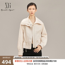 XG雪歌简约翻领休闲风衣女2025春新款抽绳收腰短外套XK108005A391