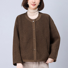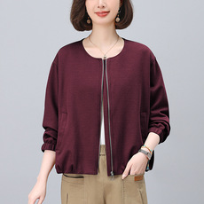 高级感气质休闲宽松桑蚕丝短外套女长袖2025秋冬新款妈妈保暖上衣