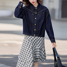 品牌撤柜 永菲E秋小香风镶边格子前短后长宽松磨毛中长款外套风衣