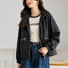 播25春季商场同款轻户外休闲感立领连帽风衣短款外套女BDS1FD1535
