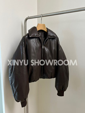 十三行拿货2025秋冬新款韩版时尚立领短款羽绒皮衣外套K68583W445