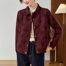 大码菱形薄款小棉服短款棒球服韩版气质百搭职场保暖棉衣外套女