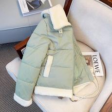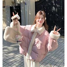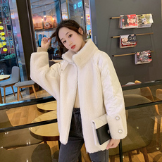 羊羔毛羽绒棉服女短款冬季奶呼呼小个子立领面包服加厚棉衣外套潮
