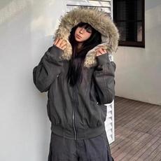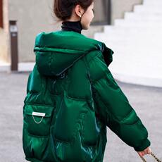 欧美女装 美式金属图层连帽加厚羽绒棉棉服保暖短款面包服短款潮