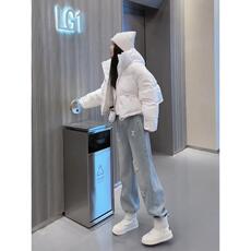 韩国东大门2024冬季新款设计感立领面包抽绳短款羽绒棉服外套女