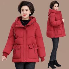 羽绒棉服短款女妈妈连帽冬装外套加厚保暖棉衣新款时尚洋气棉袄潮