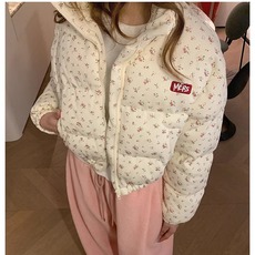 美式甜美小碎花满印羽绒棉服女冬季外套2025短款宽松加厚百搭棉衣