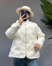纻衣杏色新中式羽绒棉服女2025冬季新品文艺绣花棉衣小众短款外套