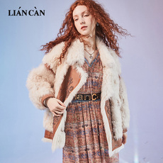 韩系时尚羊羔毛拼接大翻领羽绒棉服女冬季新款小个子收腰短款外套