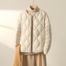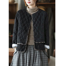 KNgs 冬季复古日系菱形格纯色短款开衫圆领内胆薄款棉衣外套女
