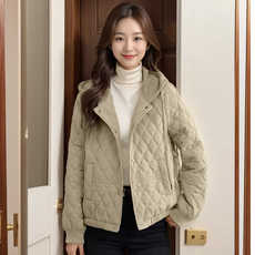 R H 韩系轻薄菱格棉服女2024年新款秋冬季小个子气质短款外套上衣