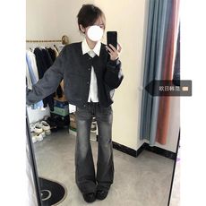KNgs 春秋复古港风纯色宽松立领飞飞袖长袖短款棒球服夹克外套女
